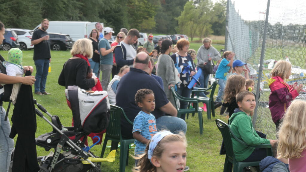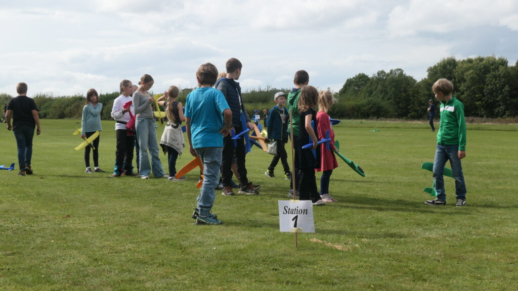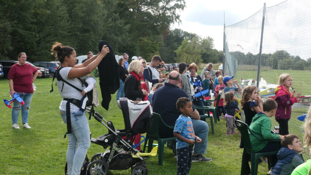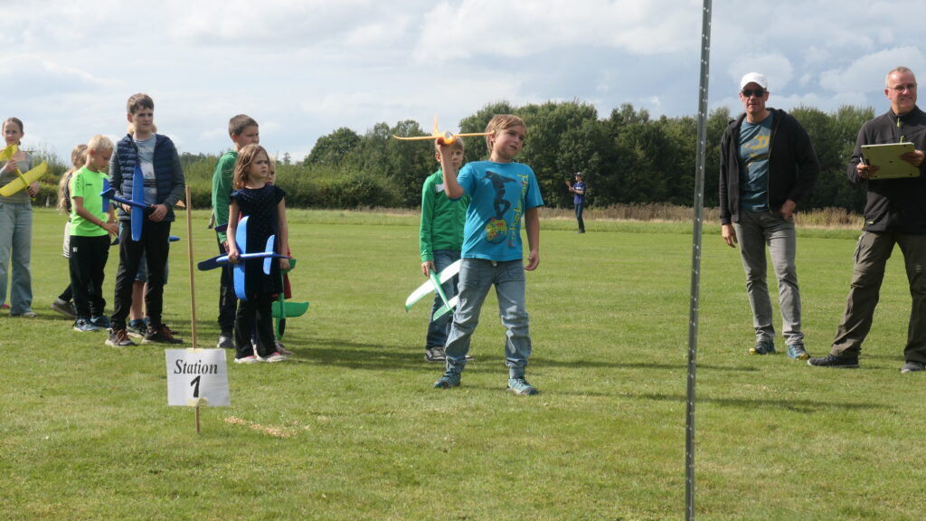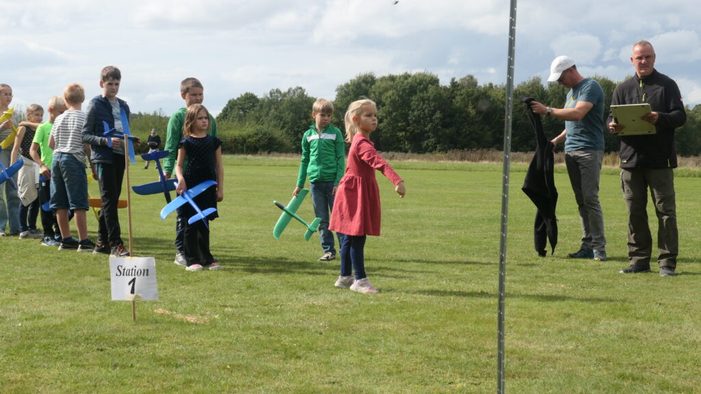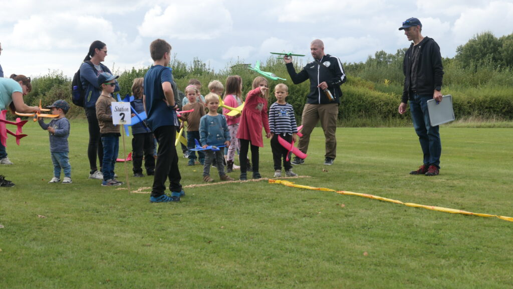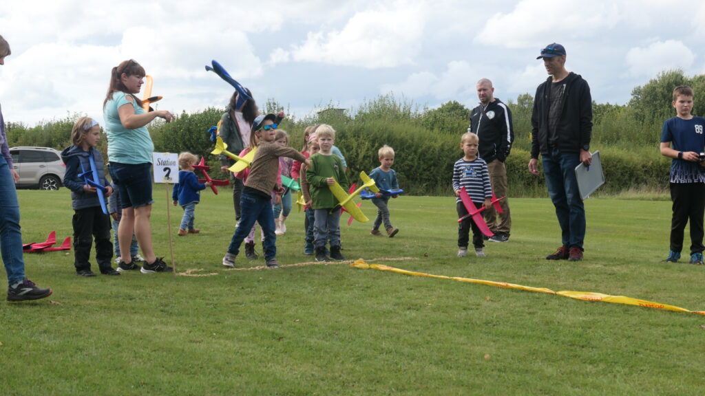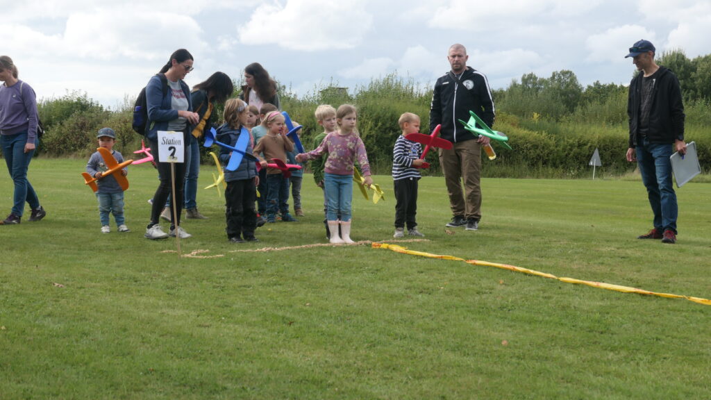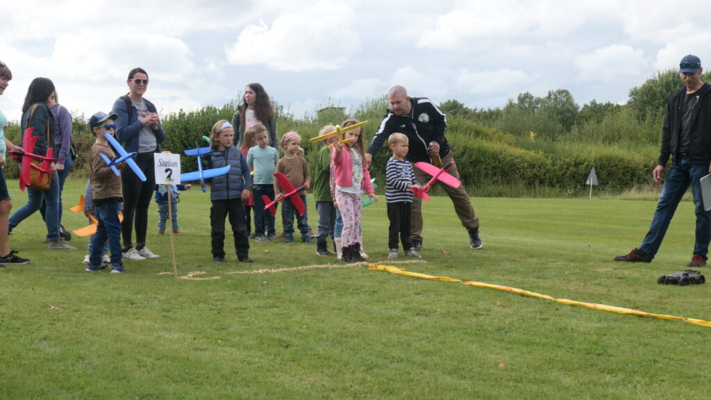 Mittags vertrieb der Wind die letzten Regenwolken und die Sonne kam zum Vorschein. Pünktlich zum Start um 14:00 Uhr stürmten 42 Kinder mit ihren Eltern und Freunden auf unser Gelände und füllten unseren Flugplatz mit Leben und guter Stimmung.