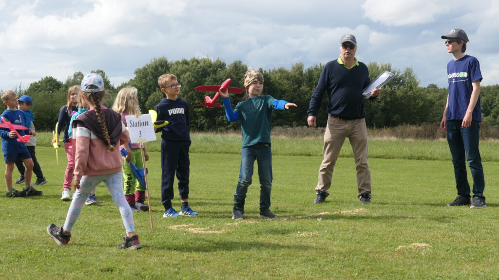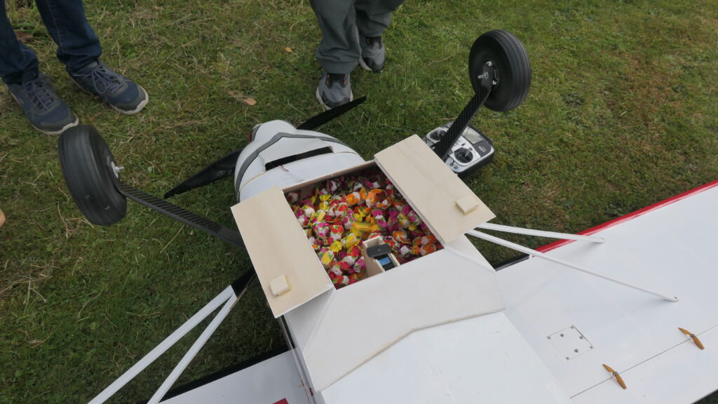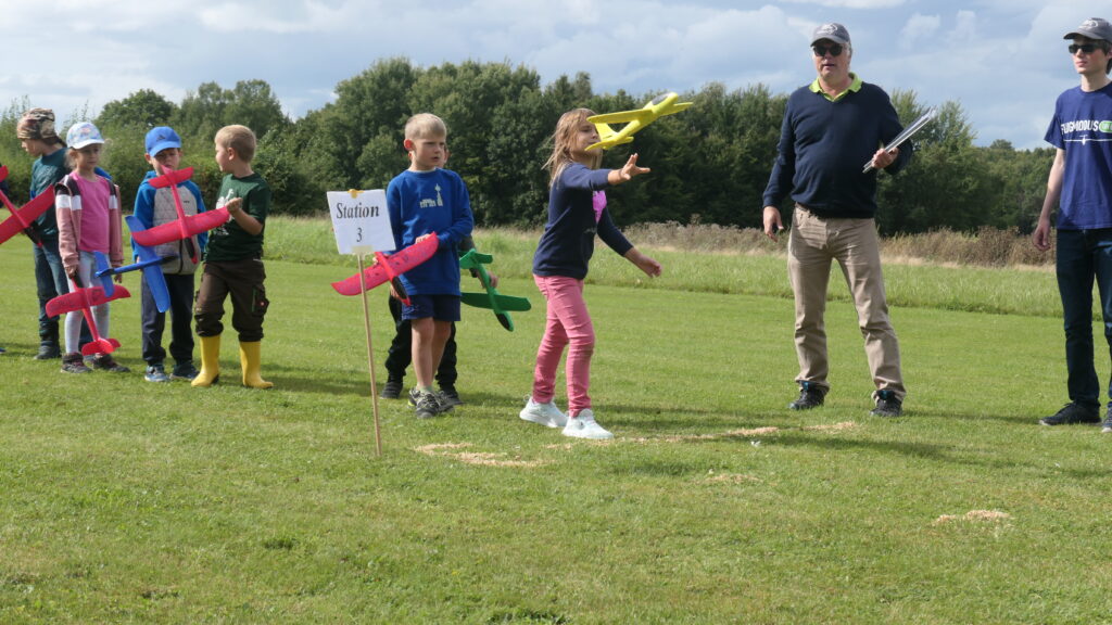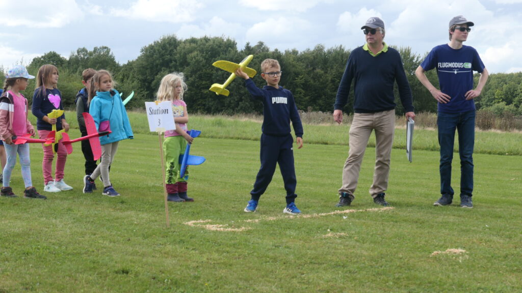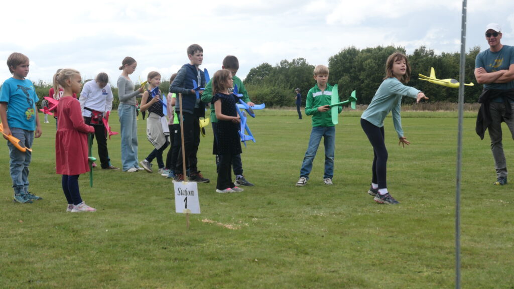 Jedes Kind bekam einen kleinen Segelflieger geschenkt, der direkt auf dem Flugplatz getestet werden konnte. Anschließend führten wir einen spannenden Wettbewerb mit Weitfliegen, Ziellandungen und Präzisionswürfen durch. Die Gewinner in den drei Altersklassen freuten sich über tolle Preise. Der Nachmittag war für alle ein riesengroßer Spaß. Nach einer Stärkung mit heißen Würstchen, Kuchen und Getränken kam unser traditioneller Bonbonflieger zum Einsatz. In drei Flügen wurden wie jedes Jahr vier Kilogramm Bonbons und kleine Fallschirmspringer über dem Flugplatz abgeworfen, die mit großer Begeisterung von den Kindern eingesammelt wurden.